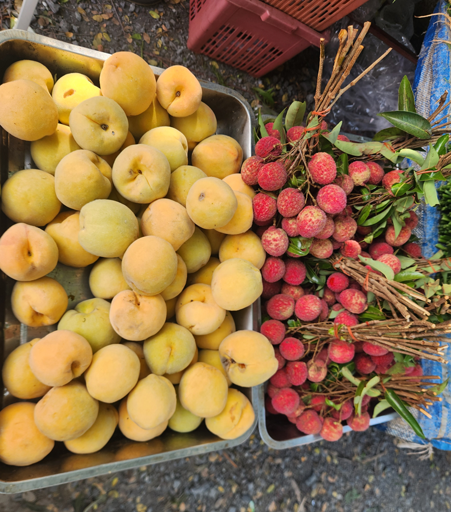 6월 린찌 철이라 린찌가 많이 나왔습니다. 노란 복숭아도 나와서 조금 샀습니다.