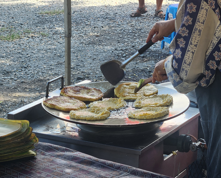 우리나라 녹두 빈대떡 같은 비슷한 걸 부치고 있었습니다. 줄이 긴걸 보니 나름 맛집인듯 합니다.
