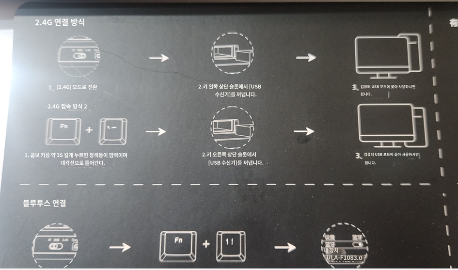 2.4G 모드로 연결을 했습니다. 연결 방법은 사진을 참고해 주세요. 설정방법은 생각보다 어렵지 않았습니다.