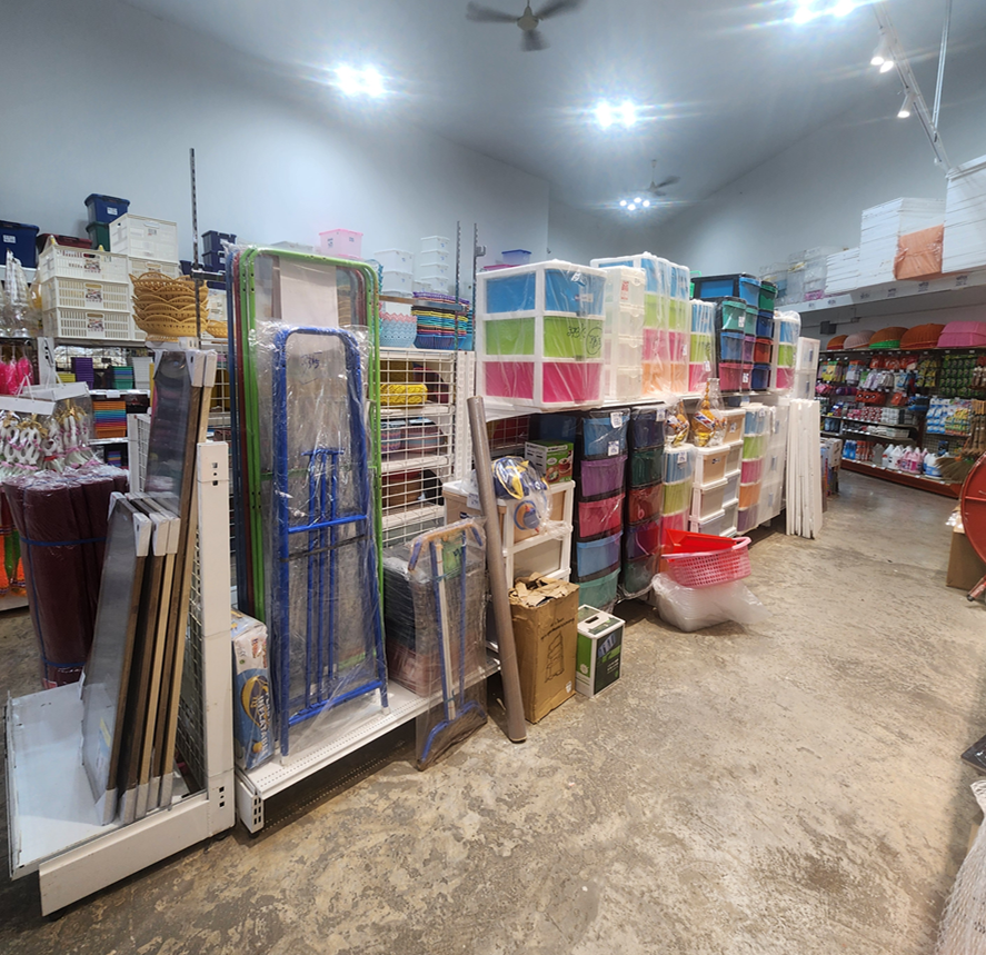 - 사진에 보이는 것처럼 매장 내부에 빈틈 없이 물건이 가득 진열되어 있습니다.