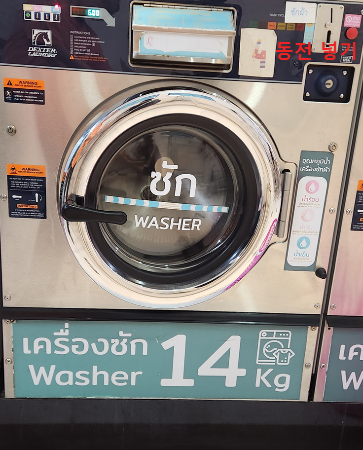 물론 빨래가 얇거나 양이 얼마 되지 않는 경우에는 충분합니다만 기본적으로 동전을 20바트 정도 추가해서 시간을 늘리는 걸 추천합니다. 그래야 건조가 끝난 다음에 뽀송뽀송한 빨래를 받으실 수 있습니다.